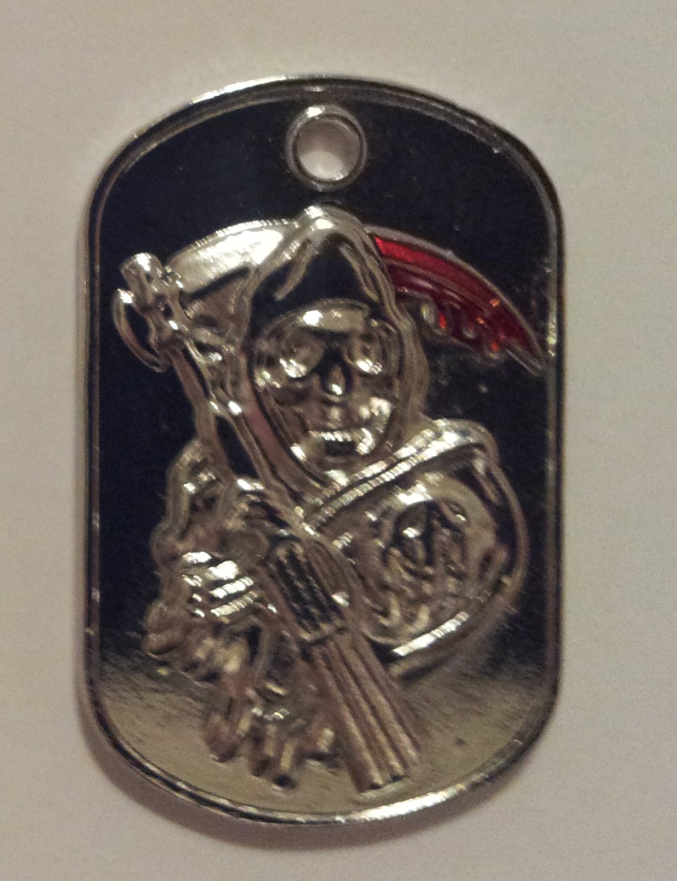 Sons of Anarchy tag av 'The Reaper' i sølvfarge.